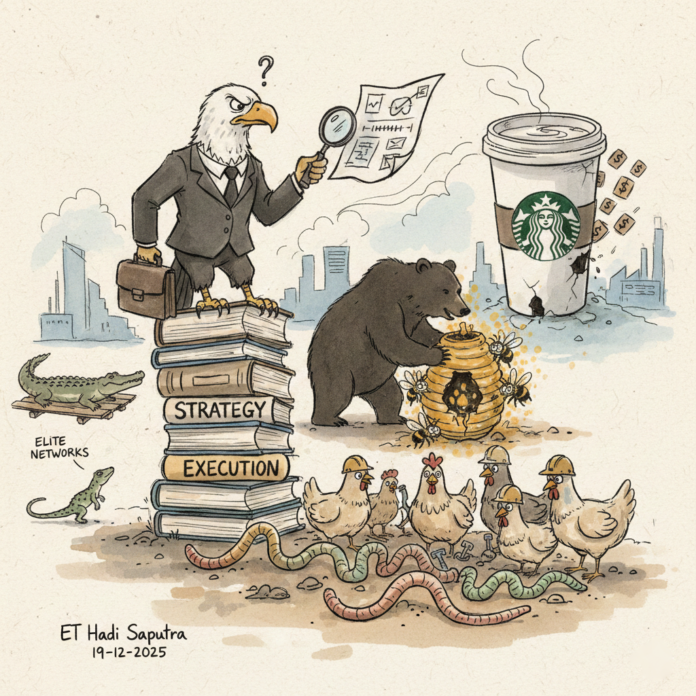 Ujung-ujungnya, Starbucks sadar. Mereka ganti si konsultan dengan operator yang paham bau biji kopi. Nilai sahamnya langsung naik. Pelajarannya sederhana: strategi itu cuma alat. Fondasi aslinya adalah eksekusi. Tanpa eksekusi, reputasi hebatmu itu cuma ilusi yang menunggu waktu untuk pecah.